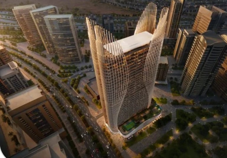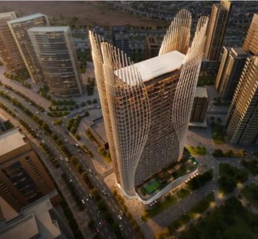 Binghatti Skyhall is a luxurious residential tower in Dubai's Business Bay, featuring sleek curved architecture with a luminous crown. Its upscale studios and 1-bedroom apartments include floor-to-ceiling windows, balconies, and high-end finishes, offering panoramic views of the Burj Khalifa and city skyline. This visionary development invites residents to embrace an ambitious and sophisticated lifestyle. Prices begin at AED 985,000.